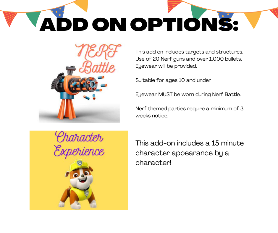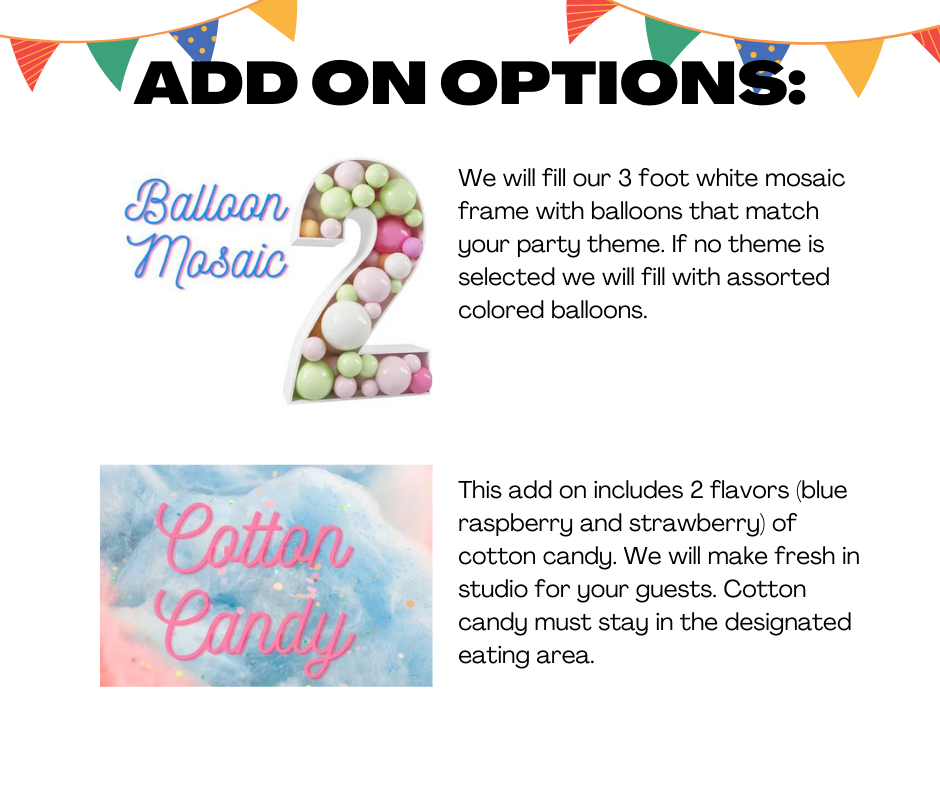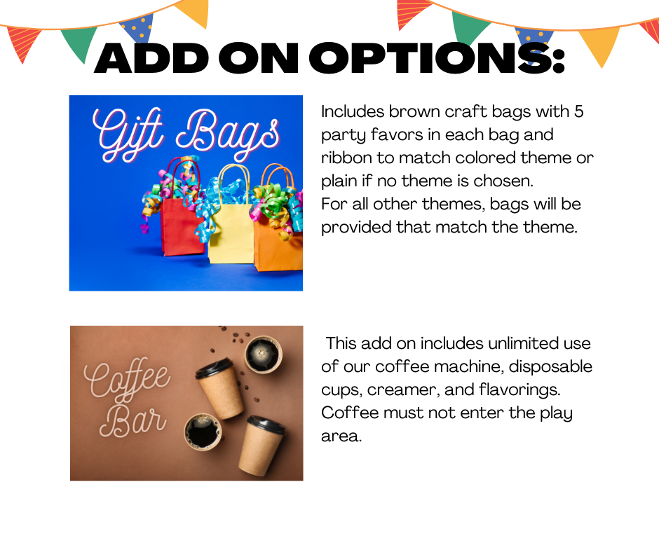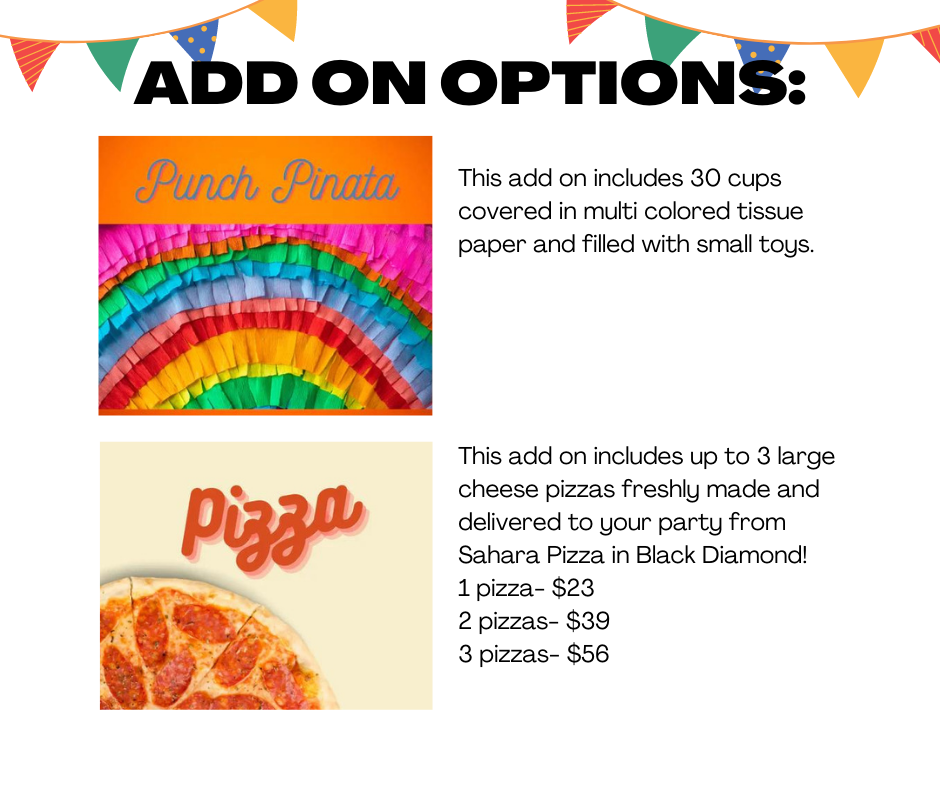- Need a longer party? Additional time is available in 30-minute increments if there is not another party already scheduled.