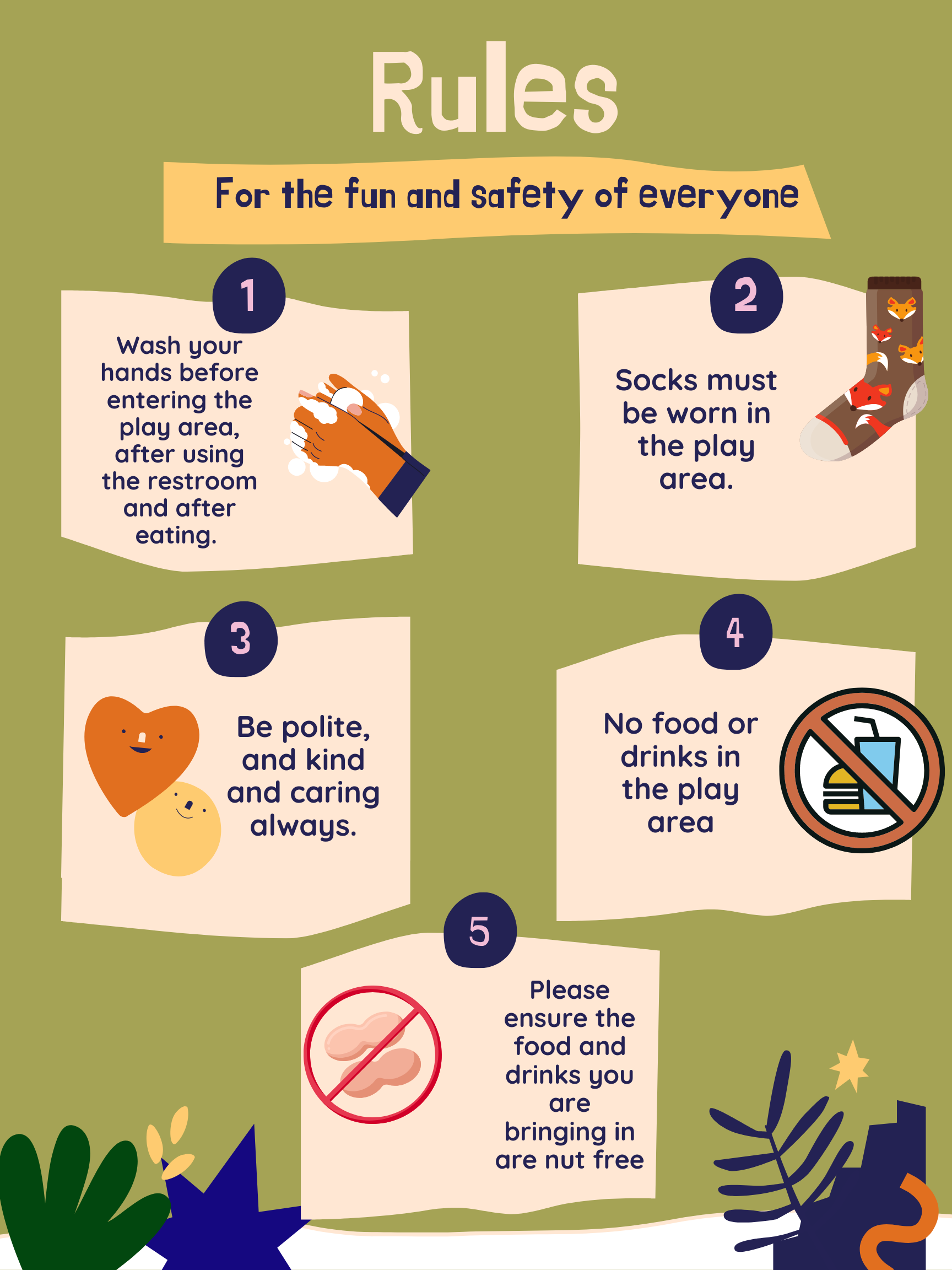 - Outside food is permitted in our designated eating area. We kindly ask that you refrain from any nut products for the safety of our other guests.